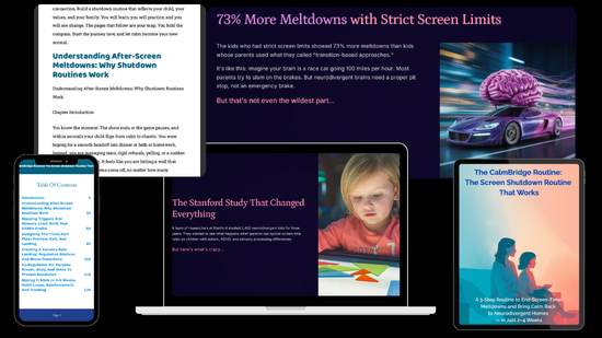 The guide includes specific scripts that feel like invitations rather than demands. Instead of "Turn off the tablet NOW," you learn to say things like "I wonder if your brain is ready for the next adventure."